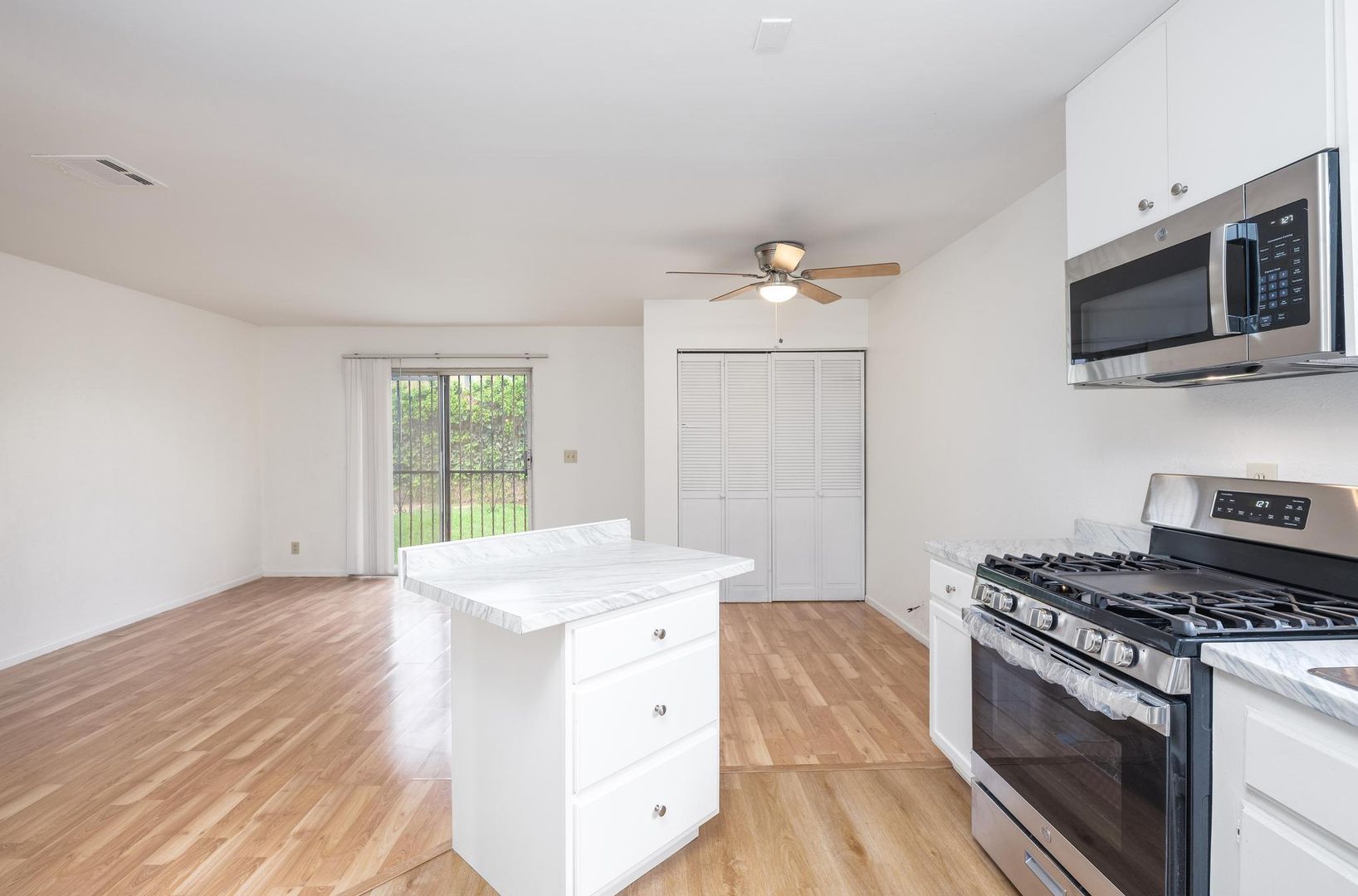 Charming 3-bedroom, 1.5-bath home boasting 1,558 sq. ft. of living space. Freshly painted and featuring new laminate flooring throughout, this home offers a spacious and welcoming atmosphere. The large living room and family room provide plenty of space for entertaining or relaxing. The open kitchen is beautifully updated with new cabinets and sleek quartz countertops, perfect for modern living. Upstairs, you'll find generously sized bedrooms with ample closet storage, as well as a full bath. The expansive backyard offers endless possibilities for outdoor activities and gatherings. This home is a must-see!